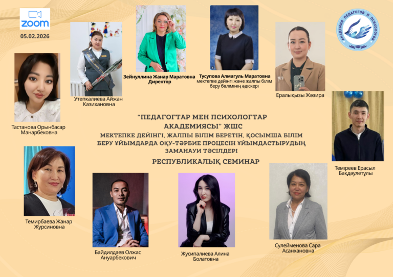 Семинар на тему:Мектепке дейінгі, жалпы білім беретін, қосымша білім беру ұйымдарда оқу-тәрбие процесін ұйымдастырудың заманауи тәсілдері