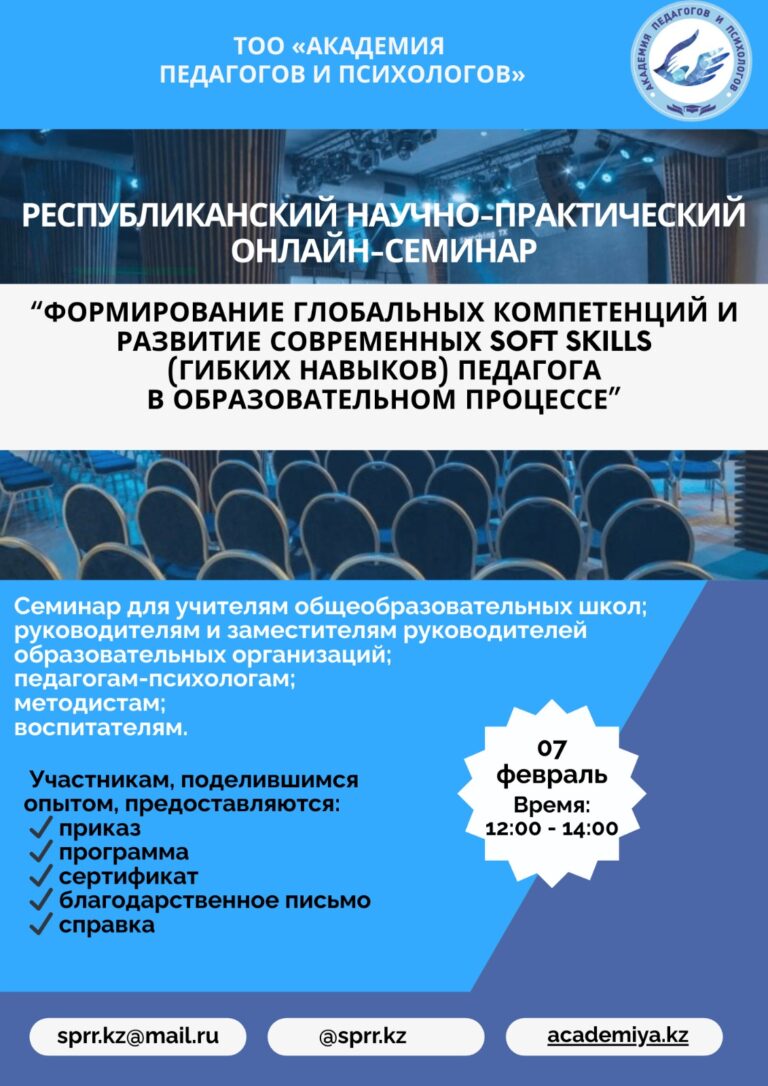 “Формирование глобальных компетенций иразвитие современных soft skills (гибких навыков) педагога в образовательном процессе”